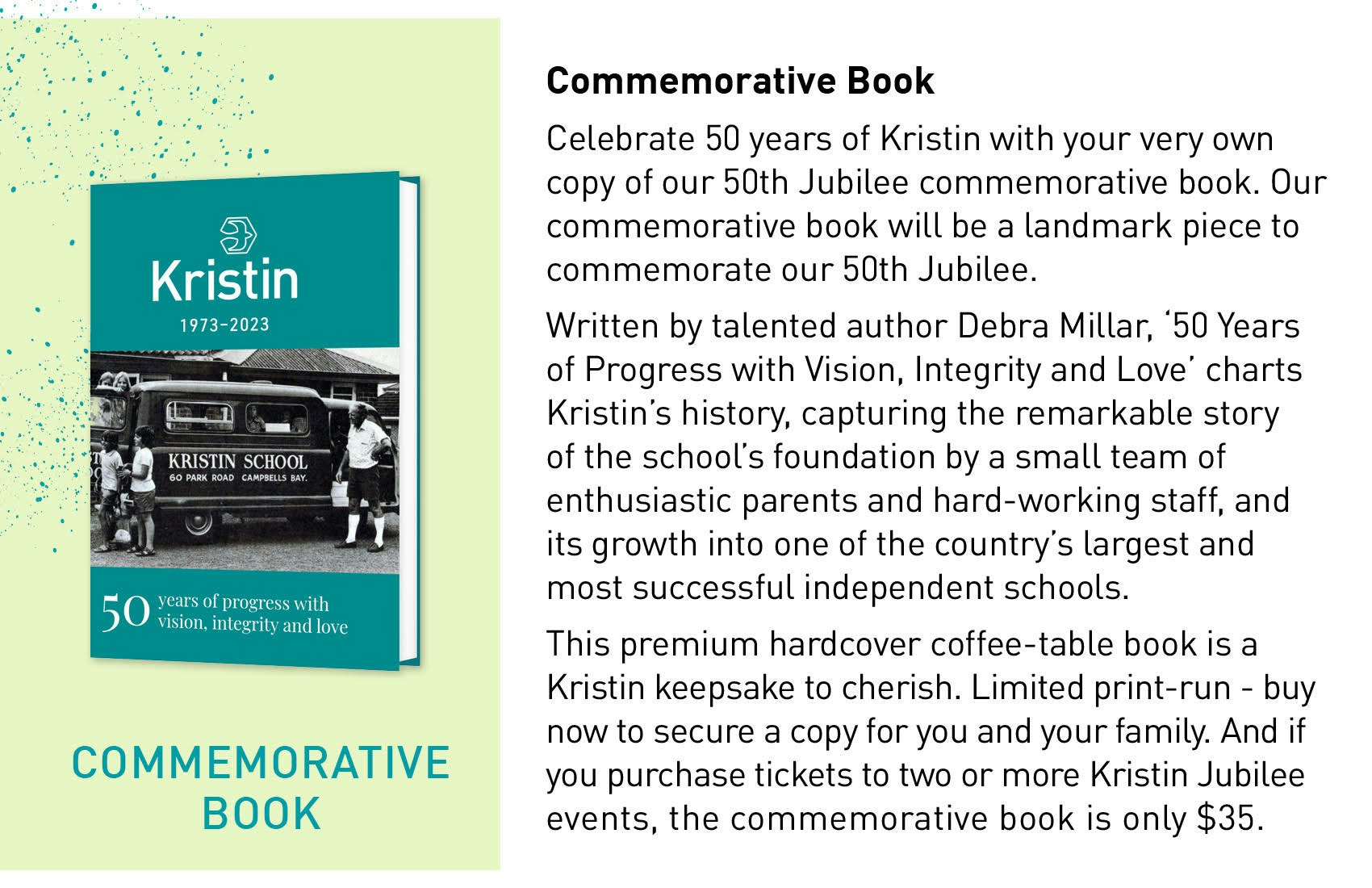 Memorabilia has been uniquely designed for the 50th Jubilee Celebration to ensure our Community has a special piece to remember this important milestone in Kristin’s history.
